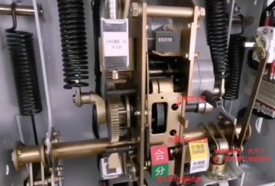 2,按下合閘按鈕后,合閘指示牌顯現在合閘方位。儲能顯現在未儲能狀況,未儲能是能夠分閘的,分閘的開釋繃簧是擺開的,按下分閘按鈕,分合閘指示牌顯現已分閘,這是在未儲能狀況按合閘按鈕是合不了閘的,合閘必須要儲能,